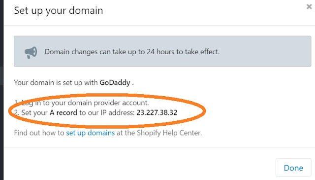 In your domain provider account (example GoDaddy), you must now apply Shopify's IP address (as displayed in the image above) to the domain's 'A' records (for your chosen host which is Shopify in this case).